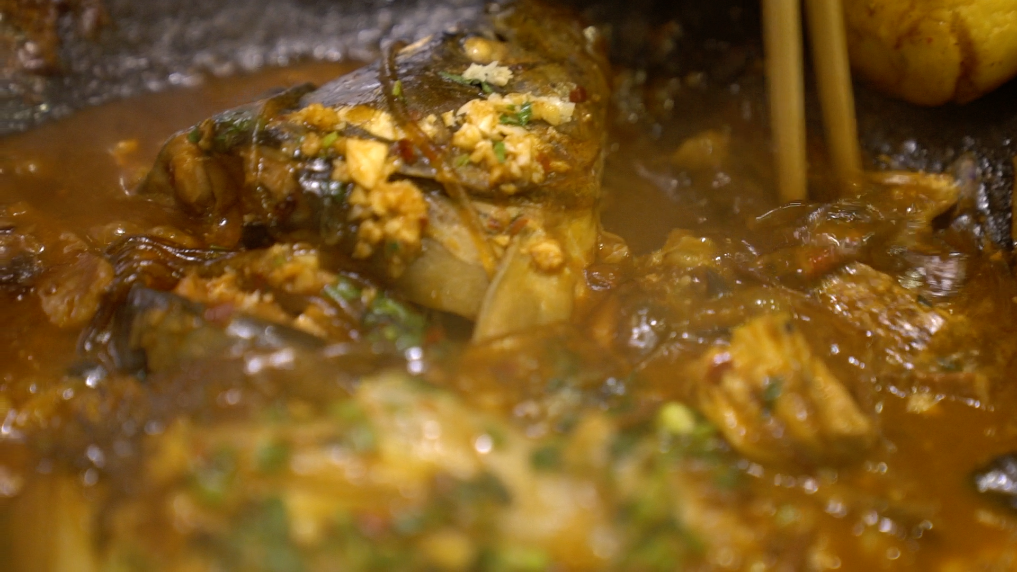 图为11月30日拍摄的东北铁锅炖鱼。(新华社记者 周万鹏 摄)