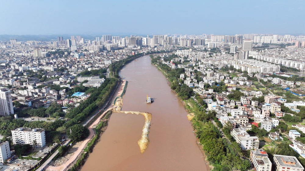 这是11月25日拍摄的平陆运河途经钦州市区的航道(无人机照片)。新华社记者 张爱林 摄
