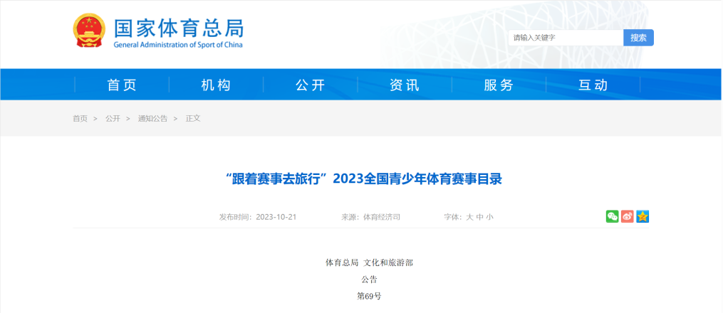 国务院办公厅9月底印发的《关于释放旅游消费潜力推动旅游业高质量发展的若干措施》就提出,推动体育赛事和旅游活动一体谋划、一体开展,结合重大、特色赛事,培育“跟着赛事去旅行”品牌项目,打造一批具有影响力的体育旅游精品线路、赛事和基地。国家体育总局、文化和旅游部还联合发布了“跟着赛事去旅行”2023全国青少年体育赛事目录。