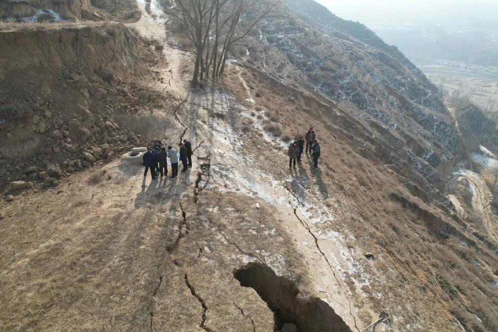 图为甘肃临夏州积石山县自来水管主管破裂地面塌陷。(水利部供图)