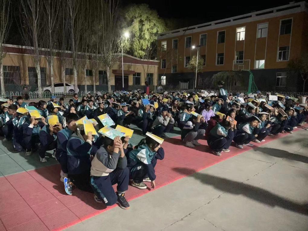 12月18日晚,循化撒拉族自治县清水乡初级中学在夜间开展应急演练。 (清水乡初级中学供图)
