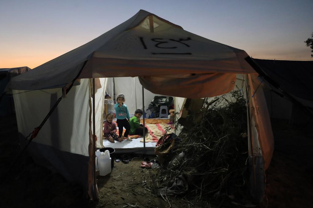 12月18日,在加沙地带南部城市拉法,孩子们在临时避难所休息。新华社发(亚西尔·库迪摄)