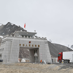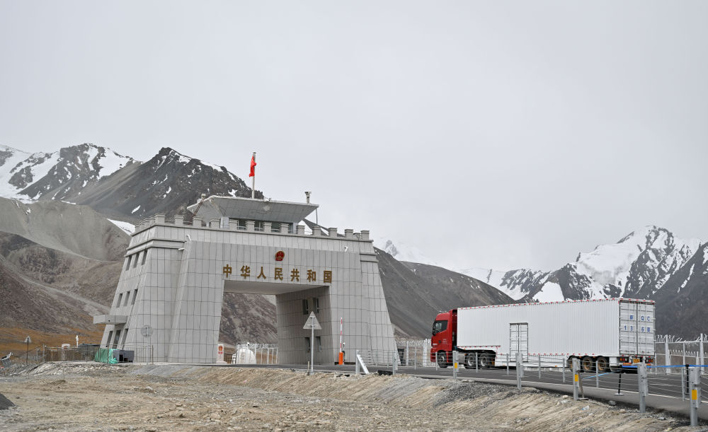 2023年9月20日,一辆货车经过红其拉甫国门出境。新华社记者 李响 摄