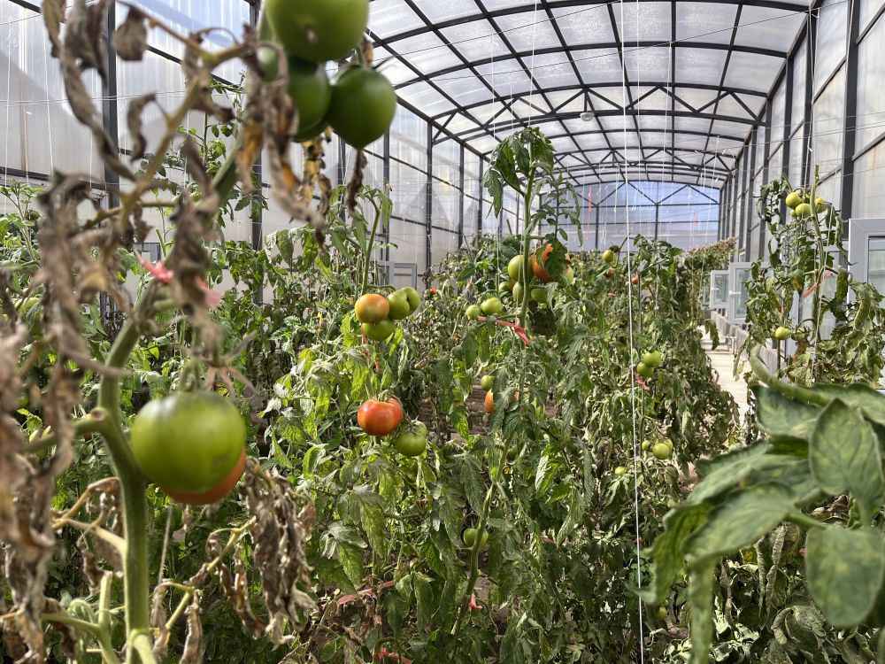 这是2023年9月23日在卡拉苏出入境边防检查站的阳光房内拍摄的西红柿。新华社记者 高晗 摄