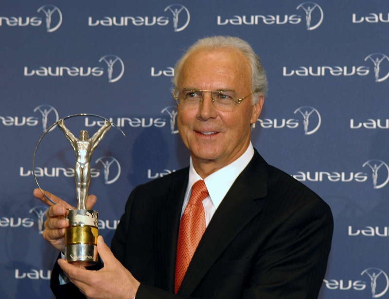 这是2007年4月2日,在西班牙巴塞罗那举行的第八届世界体育劳伦斯奖颁奖仪式上,贝肯鲍尔获得劳伦斯终身成就奖。新华社记者 陈海通 摄