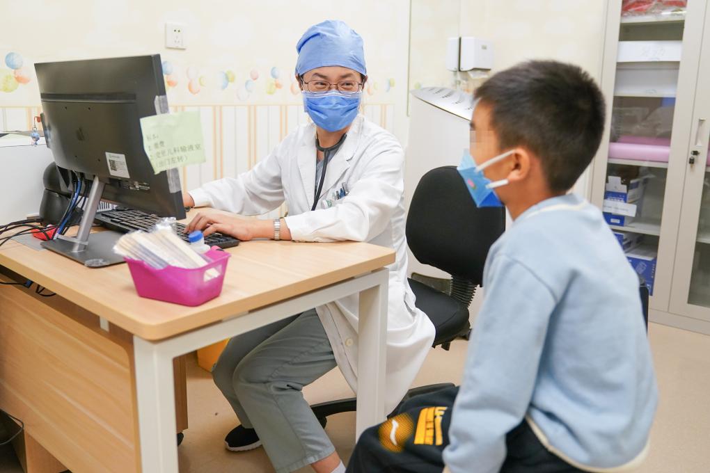 在北京同仁医院儿科,主任医师胡慧敏在询问孩子病情(2023年12月15日摄)。新华社记者 彭子洋 摄