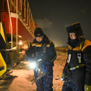 寒冬时节,零下10摄氏度的新疆霍尔果斯铁路口岸,下起了鹅毛大雪。凌晨3点,在完成了40多项安全检查后,28岁的库尔肯·马乌列提和他的同事开始了风雪夜里的“挑战”。