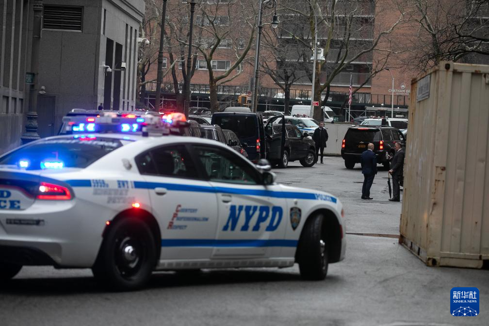 1月25日,在美国纽约,美国前总统特朗普的车队在法院外等待。新华社发(郭克摄)