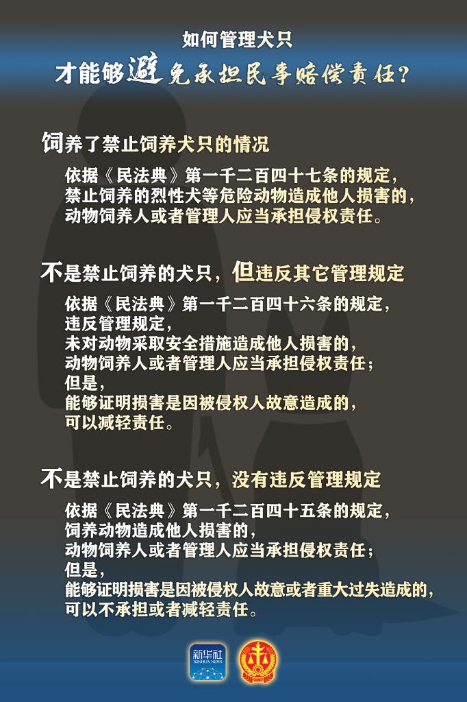 “据统计,仅就养犬看,2022年中国城镇犬只数量为5119万只。实践中,致人严重损害的主要是烈性犬等危险犬种。”最高人民法院民一庭庭长陈宜芳介绍,《民法典》《中华人民共和国治安管理处罚法》《中华人民共和国动物防疫法》以及相关地方法规规章等都对犬只饲养人、管理人应当履行的义务作出了规定。