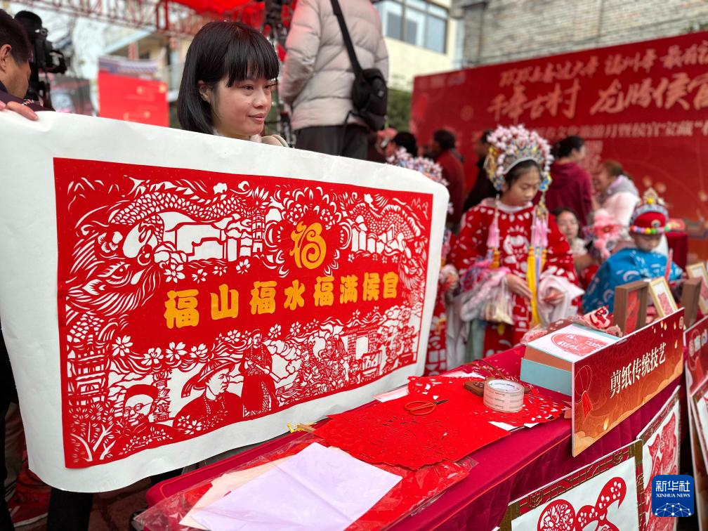 侯官市集上的剪纸传统技艺展示。新华社记者邓倩倩 摄