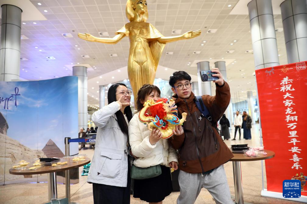 在埃及,开罗中国文化中心联合埃及旅游促进局10日在开罗国际机场举办“欢迎中国游客来埃及过大年”仪式,迎接当天抵达的300余名中国游客。