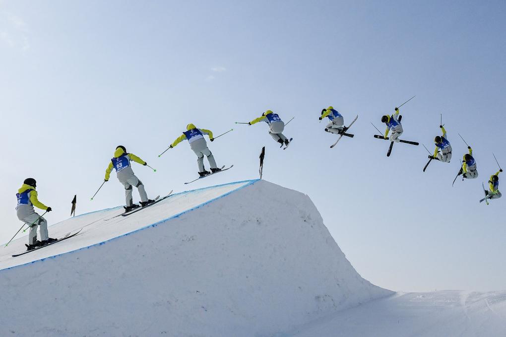 2月17日,第十四届全国冬季运动会自由式滑雪公开组男子大跳台比赛在内蒙古呼伦贝尔市扎兰屯金龙山滑雪场举行。新华社记者 牟宇 摄