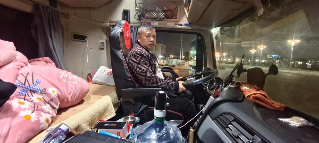 迷迷糊糊睡到第二天早上6点半,小章接到货主电话,脸也没洗就叫起随行记者发动了货车。