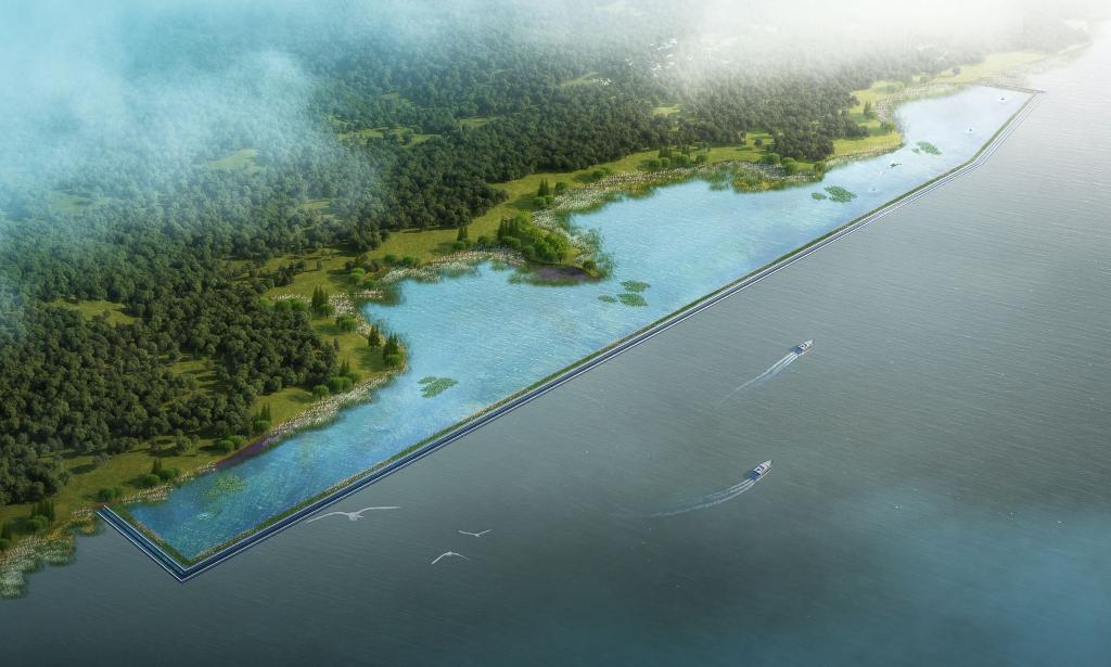 蒋俊还介绍,水下湿地带将种植苦草等沉水植物约18.81万平方米,种植睡莲等浮水植物约0.3万平方米,种植芦苇等挺水植物约0.63万平方米,另外还将投放鳙鱼等水生动物。