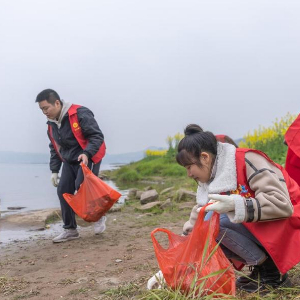 3月4日,重庆市永川区朱沱镇与四川省泸州市合江县白沙镇联合成立的“一抹志愿红”联合志愿服务队,来到永川区朱沱镇周公沱长江沿线,开展保护长江母亲河志愿服务活动。新华社记者 黄伟 摄