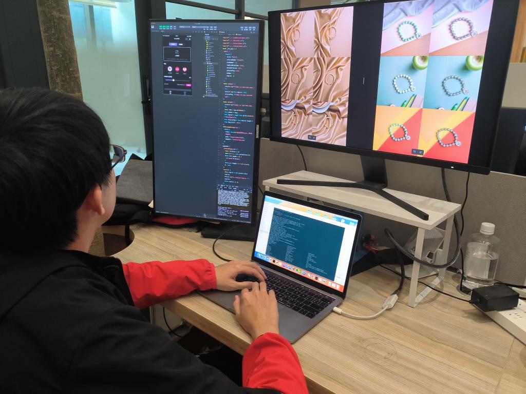 落户义乌的AI初创公司灵图科技团队人员正在为商户生成AI首饰展示图。(受访者供图)