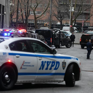 2024年1月25日,在美国纽约,美国前总统特朗普的车队在法院外等待。新华社发郭克摄