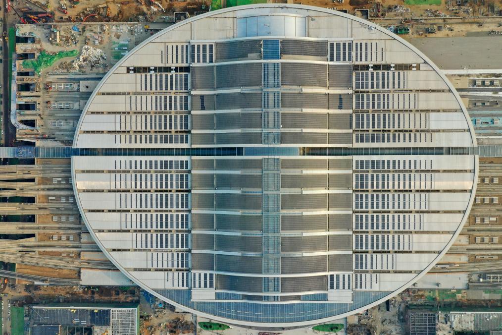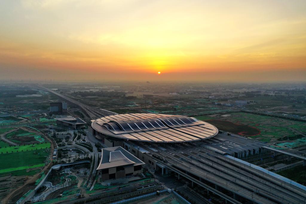 京雄城际铁路雄安站,椭圆形屋顶是一座光伏电站(2020年12月26日摄)。