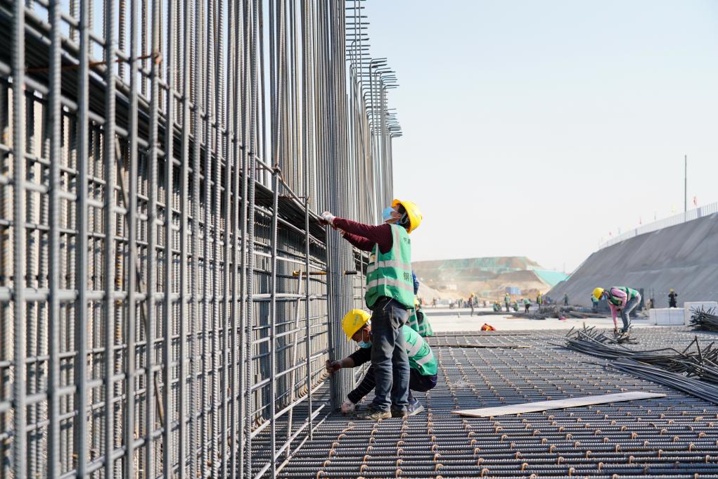 工人在河北雄安新区容东片区综合管廊项目建设现场施工(2020年3月17日摄)。