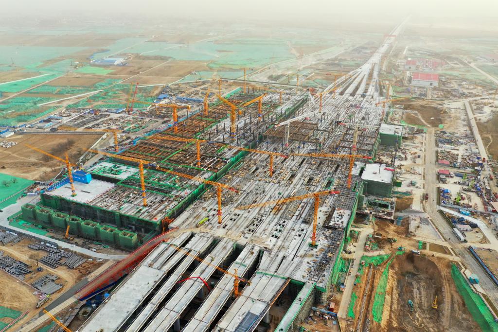 京雄城际铁路雄安站施工现场(2020年3月18日摄)。