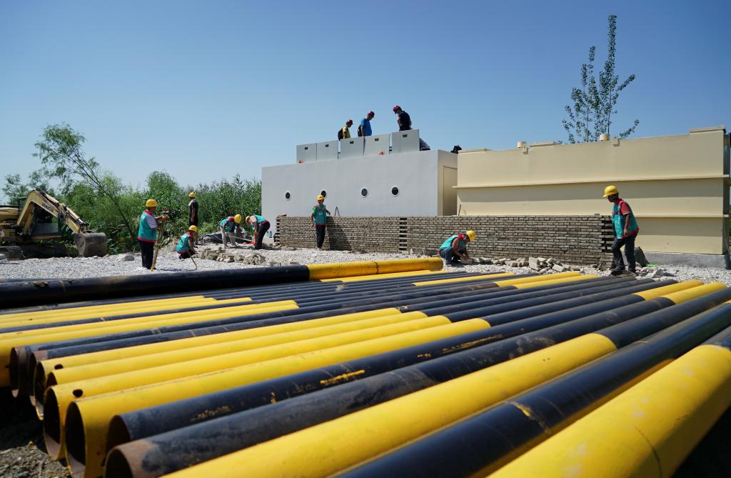 白洋淀望月岛污水净化工程施工现场(2019年8月31日摄)。
