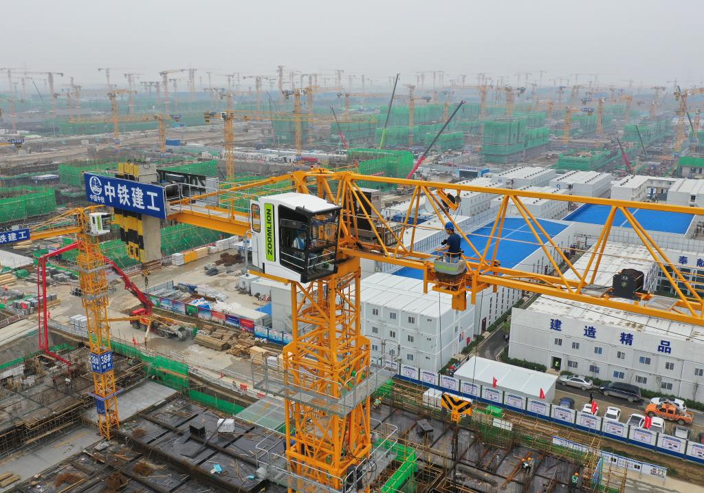 雄安新区容东片区安置房项目建设现场(2021年4月8日摄)。