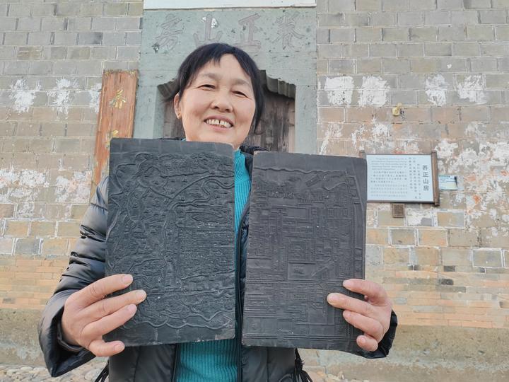 在竹桥古村,村妇联主席正在展示刻印着村庄老地图的清代雕版。新华每日电讯记者袁慧晶摄