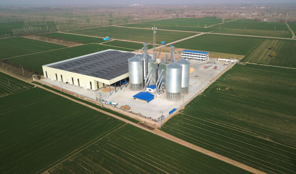 山东省汶上县高标准农田配套的粮食烘干、仓储设施(2024年3月13日摄,无人机照片)。新华社记者 徐速绘 摄
