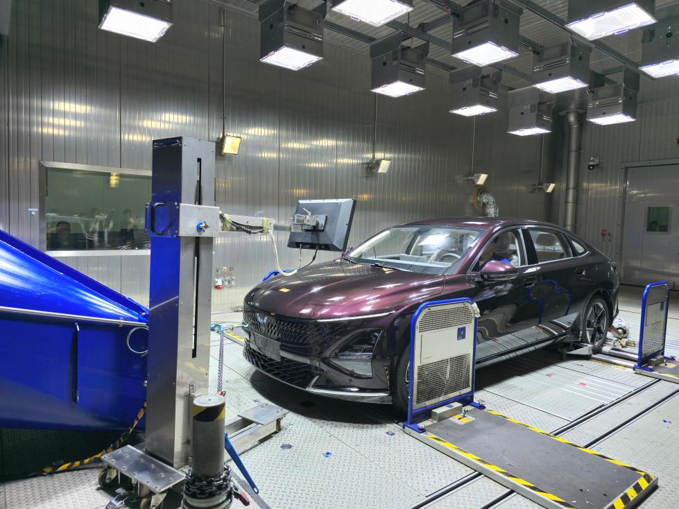 在广西新能源汽车实验室,一辆汽车正在进行测试。新华社记者农冠斌 摄