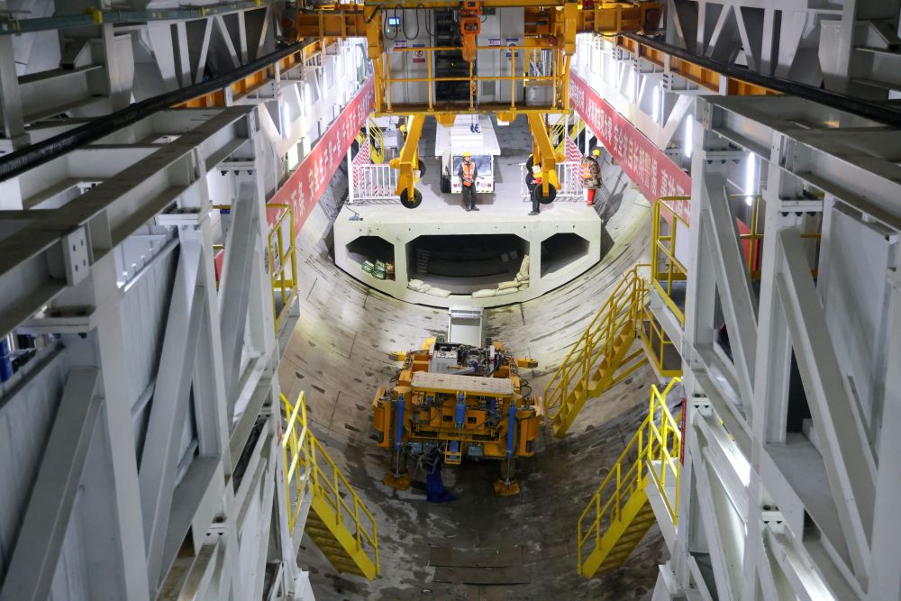 2024年2月16日,中铁十四局集团的建设者在京唐城际铁路运潮减河隧道施工。新华社记者 邢广利 摄