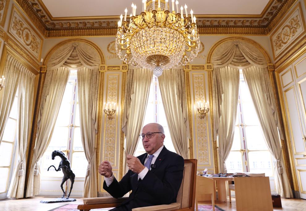 2023年12月12日,在位于法国巴黎的宪法委员会主席办公室里,法比尤斯接受新华社记者独家专访。新华社记者高静 摄