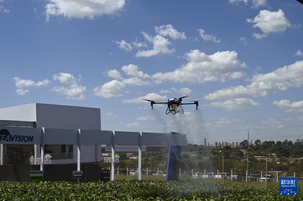 在圣保罗州里贝朗普雷图市举办的2024年巴西农业科技展上,大疆T50农业无人机一经展出就备受关注;绿油油的高粱示范田上方,极目机器人科技有限公司EA-60X植保无人机喷洒作业的场景吸引众多参观者驻足拍照;巴西农场主坐在徐工巴西制造有限公司展示的电动挖掘机的驾驶室里连连称赞……多家中国企业亮相本届展会,中国“智造”为巴西农业注入科技活力。
