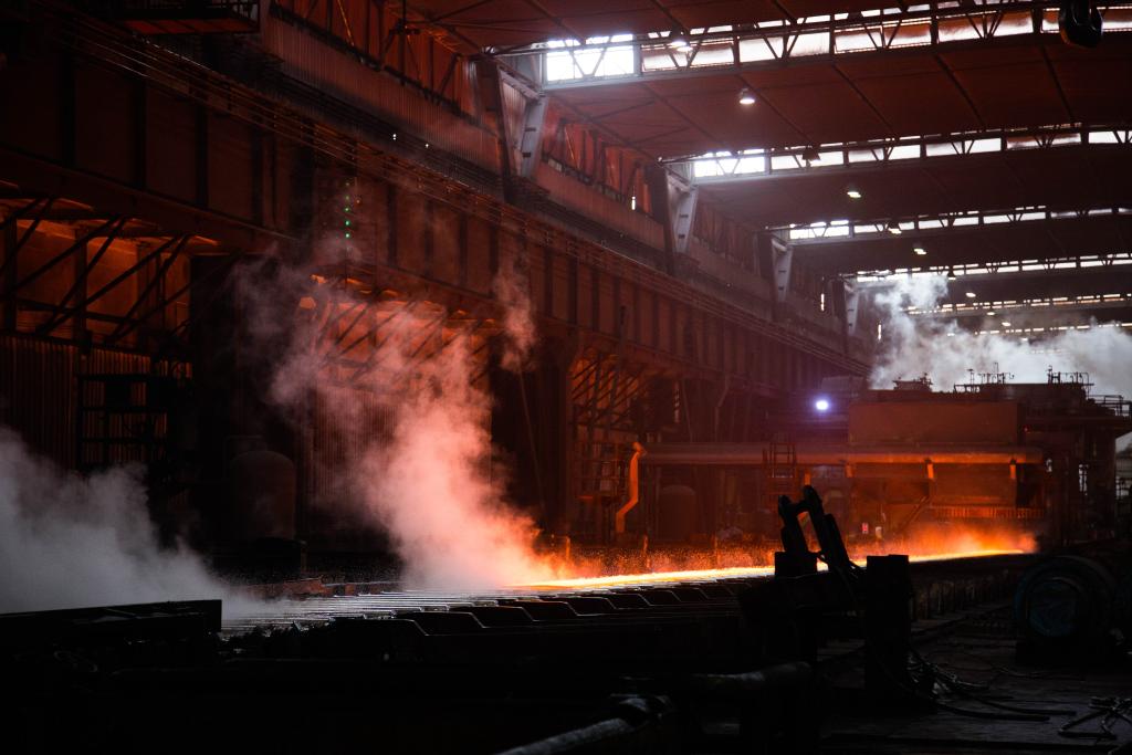 这是2021年5月17日拍摄的河钢集团塞尔维亚斯梅戴雷沃钢厂内部。