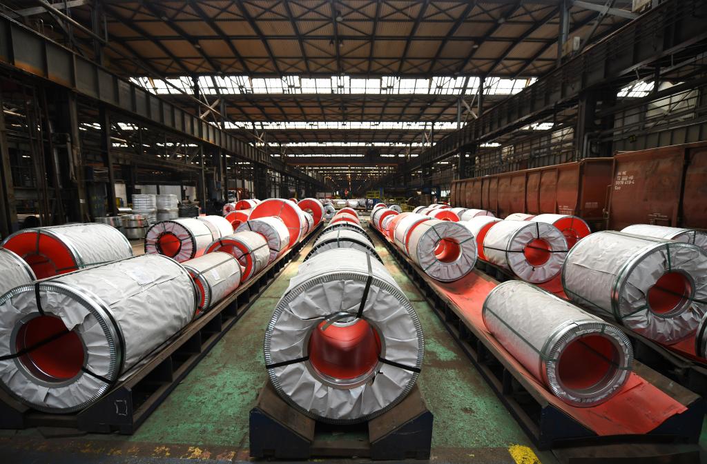 这是2023年5月5日在河钢集团塞尔维亚斯梅戴雷沃钢厂拍摄的成品钢卷。