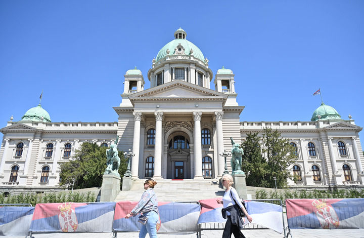 塞尔维亚贝尔格莱德市政厅(2024年4月28日摄)。 新华社记者 任鹏飞 摄