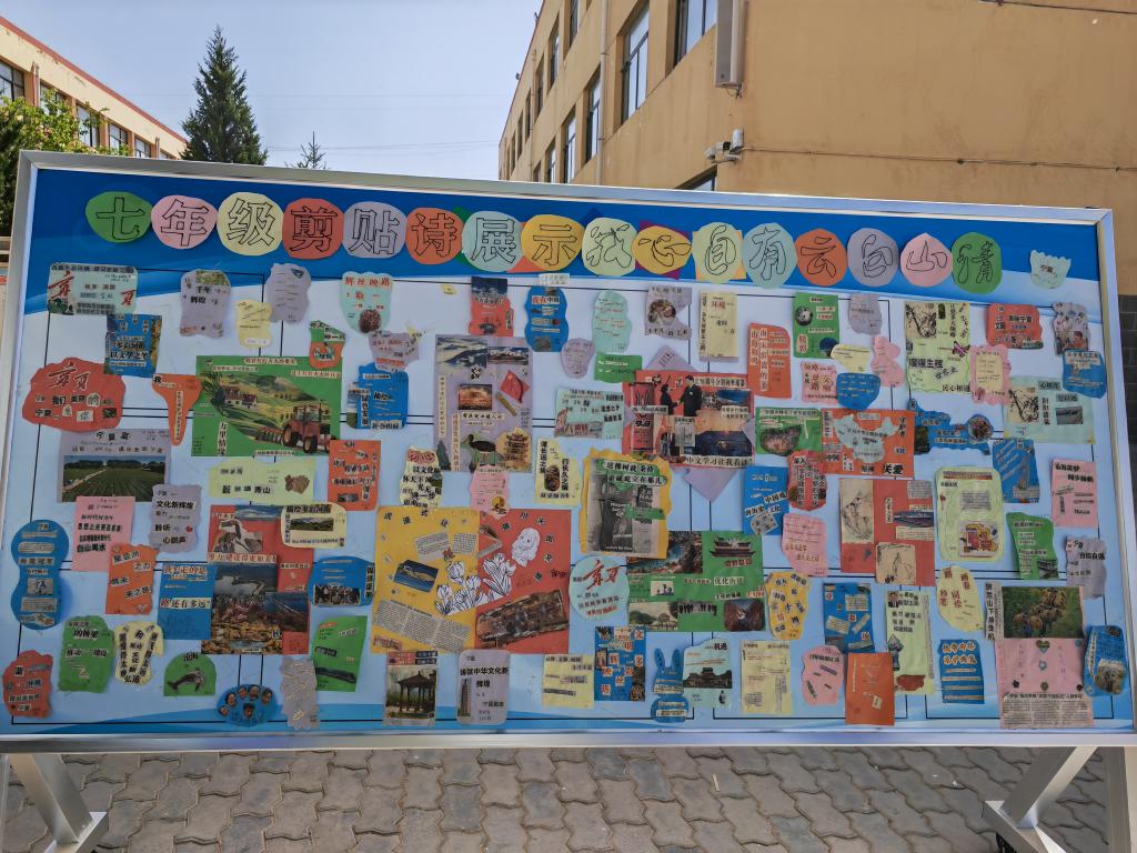 第25批厦门大学研究生支教团制作的展板,展示学生们做的剪贴诗。新华社记者 艾福梅 摄
