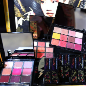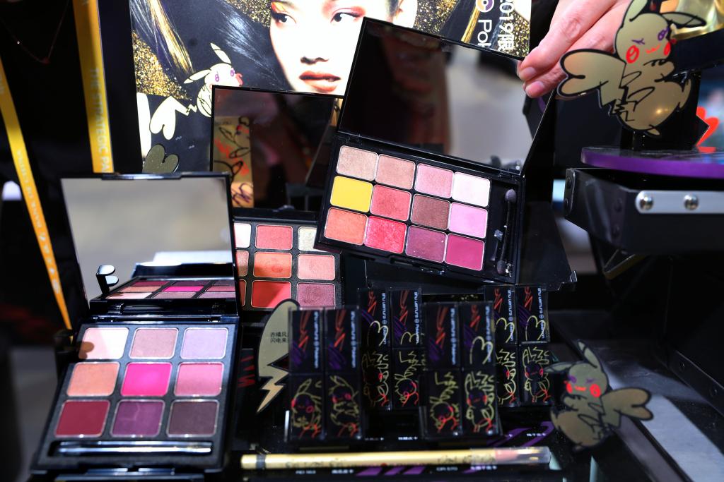 2019年11月6日在第二届进博会品质2019年生活展区拍摄的欧莱雅旗下美妆品牌展台展示的新款眼影盘。新华社记者刘颖摄
