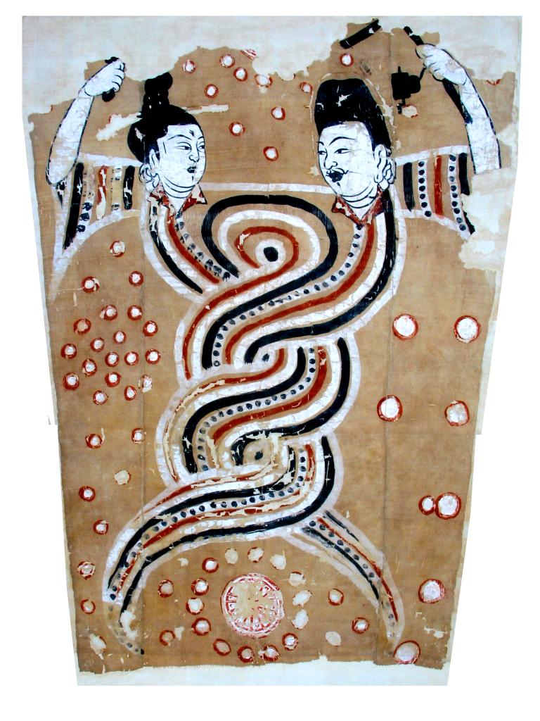 伏羲女娲像绢画(吐鲁番博物馆供图)