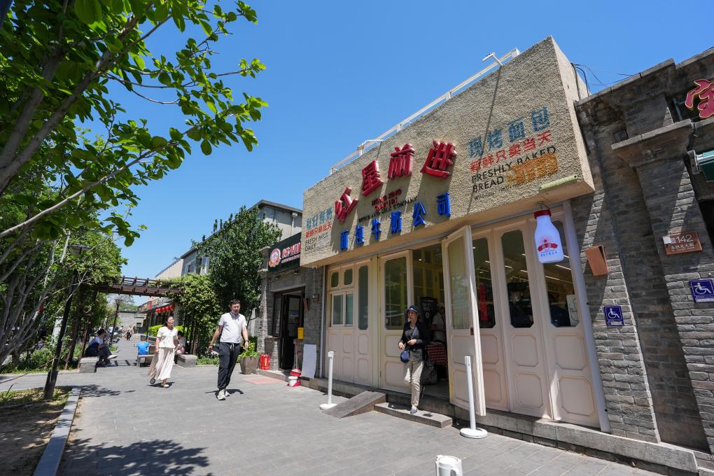 顾客在北京稻香村“零号店”选购商品(5月11日摄)。通过拆违整治、建筑风貌提升