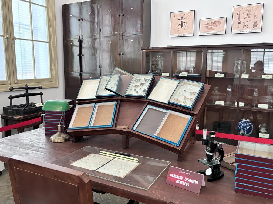 北疆博物院内还原的桑志华的工作台。新华社记者张宇琪摄