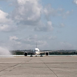 机场举行水门仪式热烈欢迎航班抵达,古巴总理马雷罗在机场迎接。马雷罗在机场举行的庆典上表示,在双方不懈努力下,中古直航复航终于梦想成真,这也是两党、两国政府和人民关系不断加强的结果。古巴旅游部长加西亚在仪式上宣布,古巴国家主席迪亚斯-卡内尔已签署主席令,即日起持普通护照的中国公民可免签入境古巴。