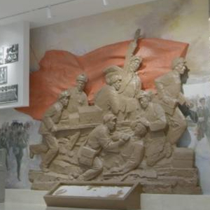 走进东北沦陷史陈列馆,黑色的大理石墙壁上,以白山黑水间的抗联战士影雕为底,红色的“艰苦卓绝十四年”七个大字异常醒目。游客们在此打卡拍照,铭记历史。