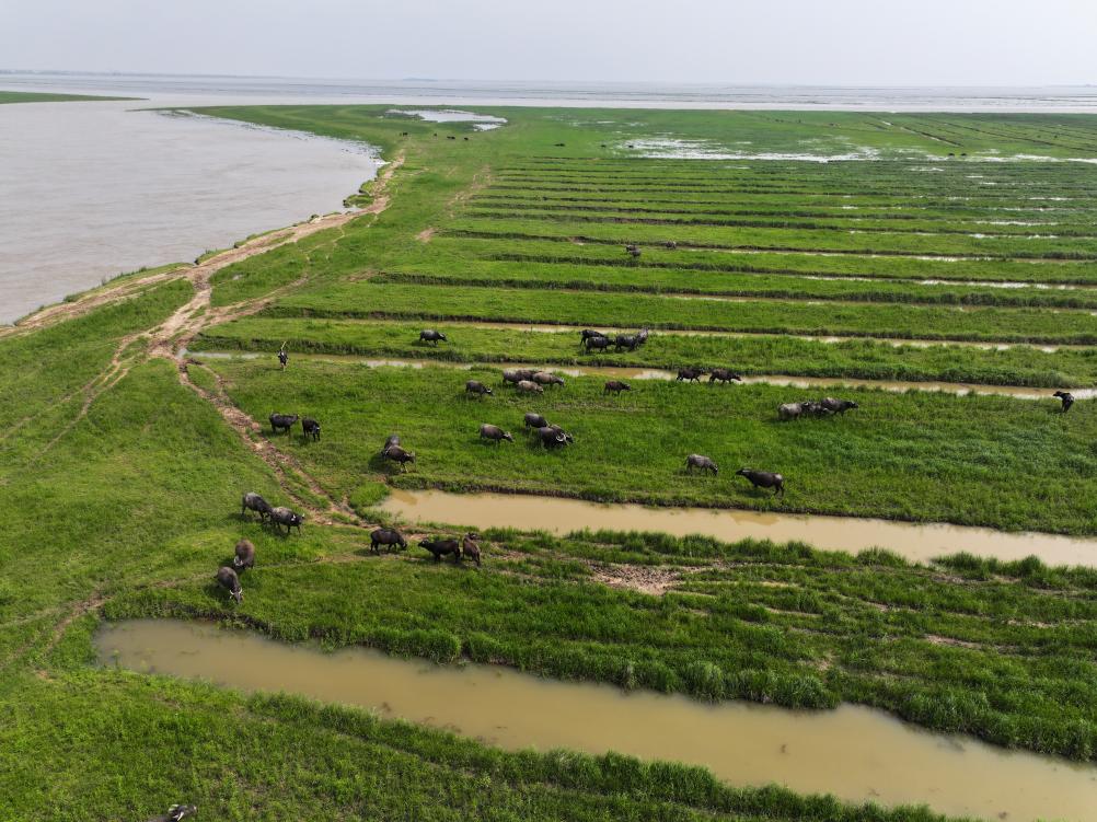 4月18日,督察组在上饶市余干县狗尾洲洲滩发现,有大量牛群在洲滩围垦地上放养。(无人机航拍)