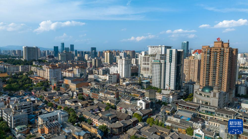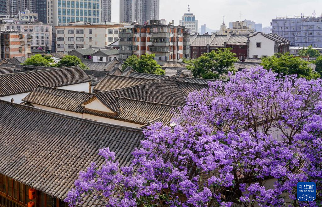 空中俯瞰昆明老街(无人机照片,5月13日摄)。