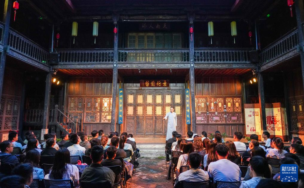 人们在钱王街上的马家大院里观看“庭院剧”(5月8日摄)。