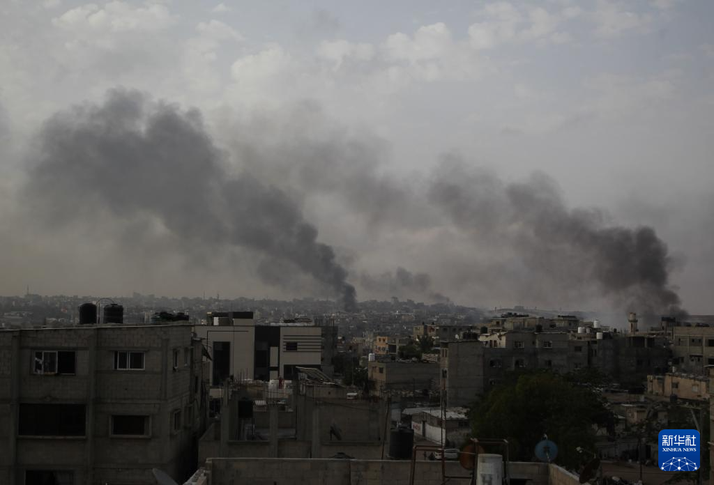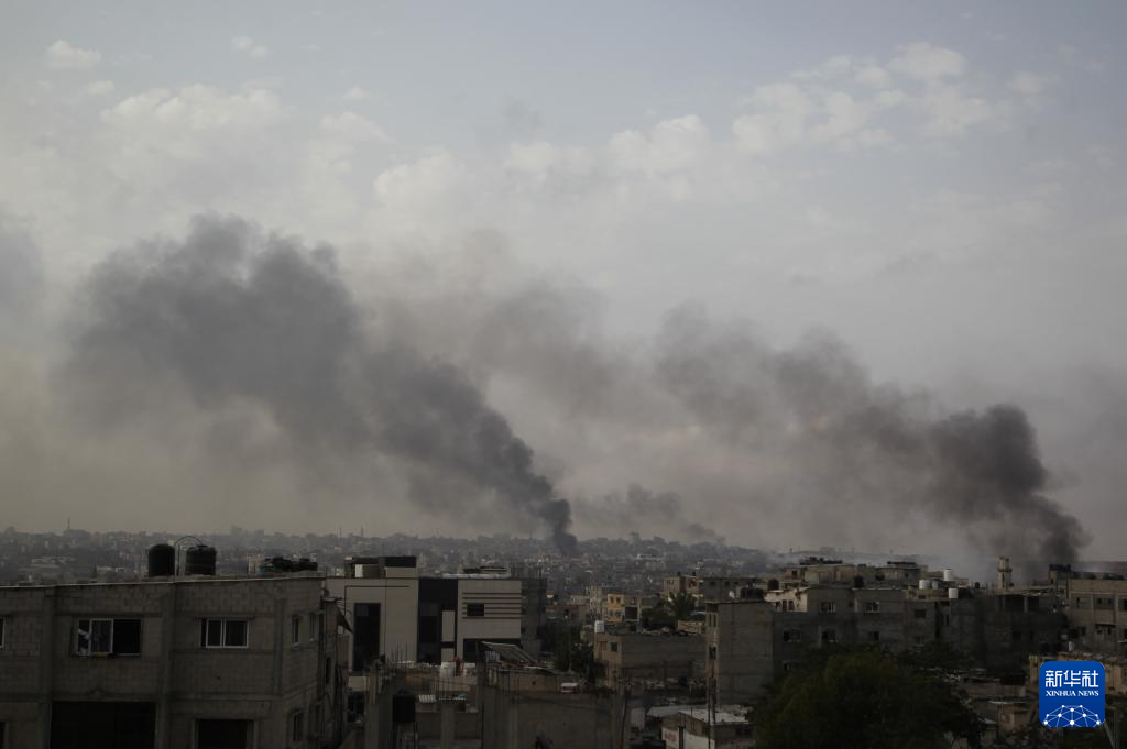 5月28日,加沙地带南部城市拉法在以军密集轰炸期间升起浓烟。 新华社发(哈立德·奥马尔摄)