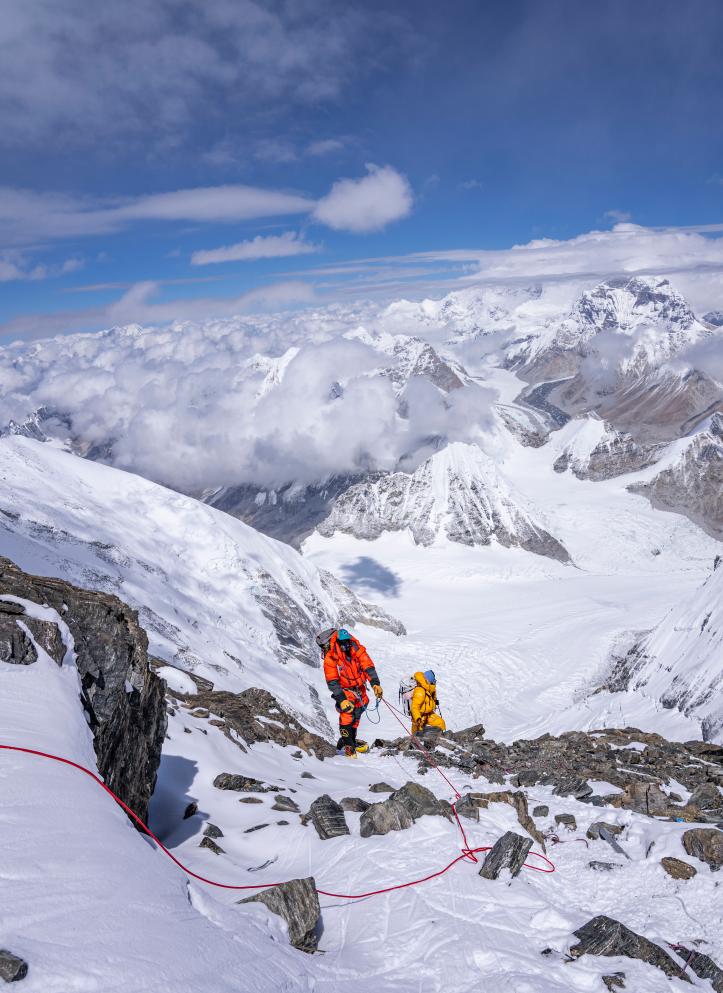 登山者正在攀登珠峰(5月22日摄)。新华社发(哈康·埃兰森 摄)