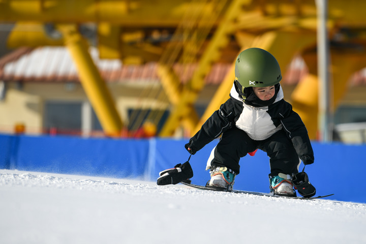 2022年1月7日,小枣在扎兰屯市金龙山滑雪场练习单板滑雪。