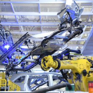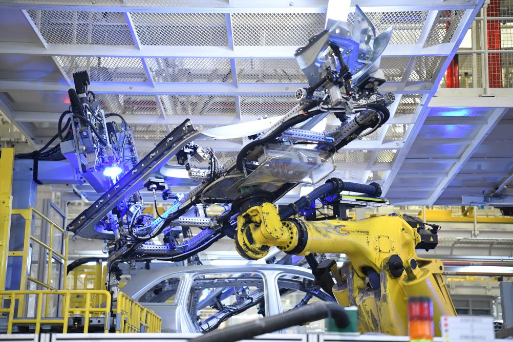 5月31日,在江苏常州理想汽车智能制造基地焊装车间,机械臂在工作。新华社记者 柳文惠 摄