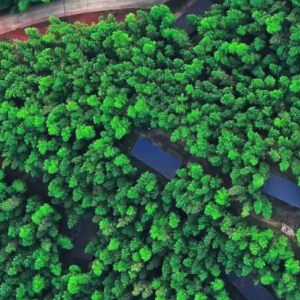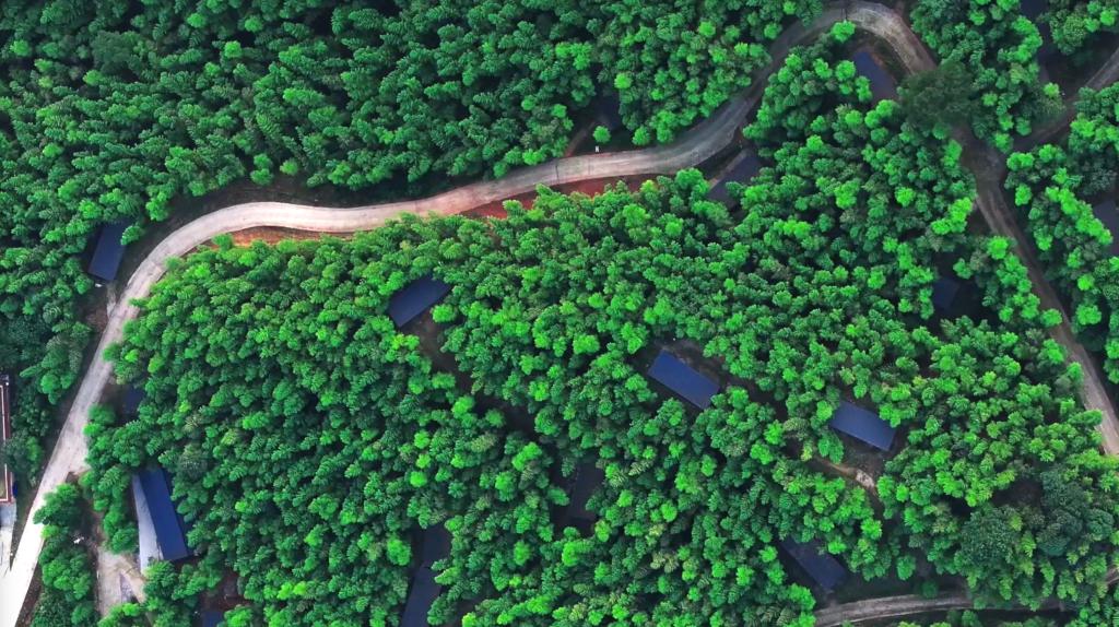 分布在竹林中、安装有AI智慧养殖系统的鸡舍。(程艺辉 摄)